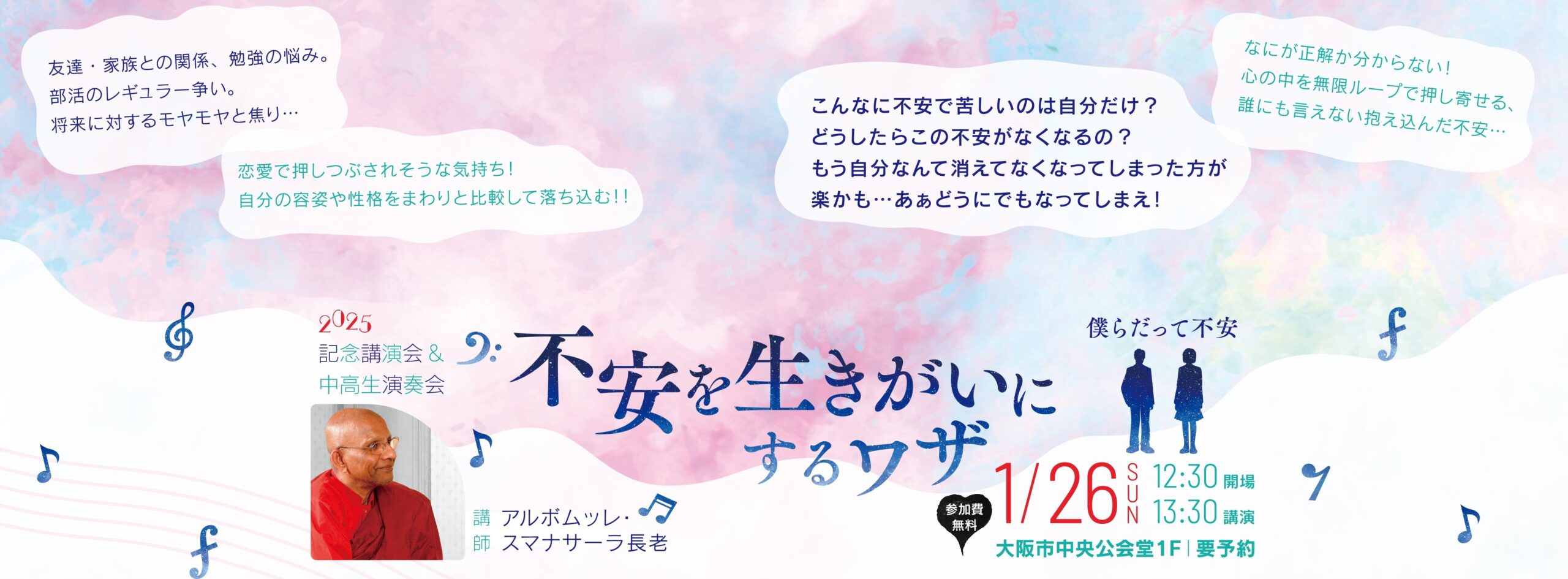 でも、安心してください。若者も大人も、私たち全ての人間に不安があります。どんな立派な人にも不安があります。だから、なぜ不安があるのか、どうすれば安心できるのか、一緒に考えてみましょう。